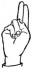 На ћирилици написано НИКОДИЈЕ ПРИБИЋЕВИЋ састоји се из 18 слова [?]. Исписано ћириличном једноручном азбуком за глувонеме: